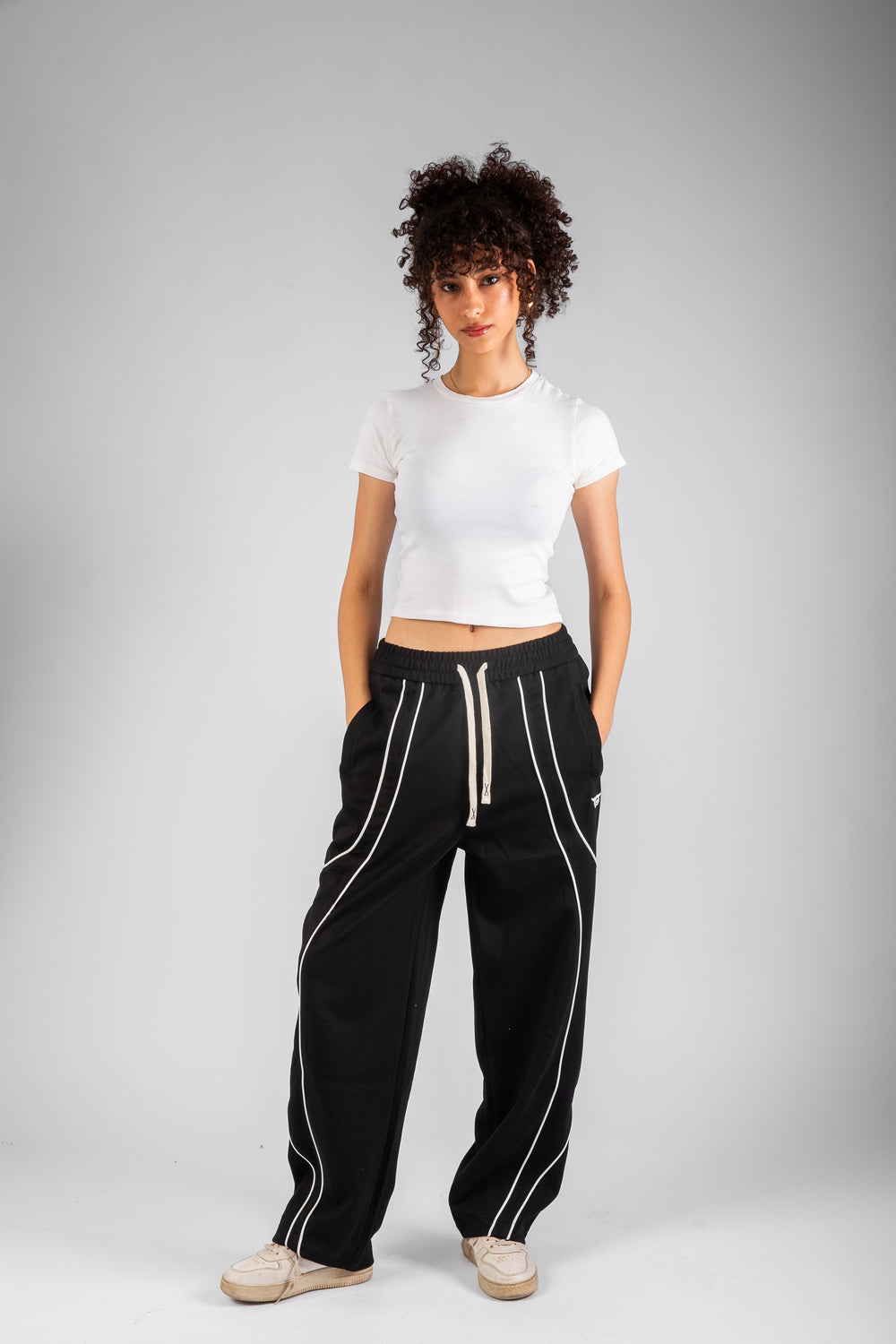 The Move Pants are made from soft Interlock fabric, designed for comfort and movement. With a relaxed fit and contrast lines, they bring an effortless, sporty vibe to your everyday look.